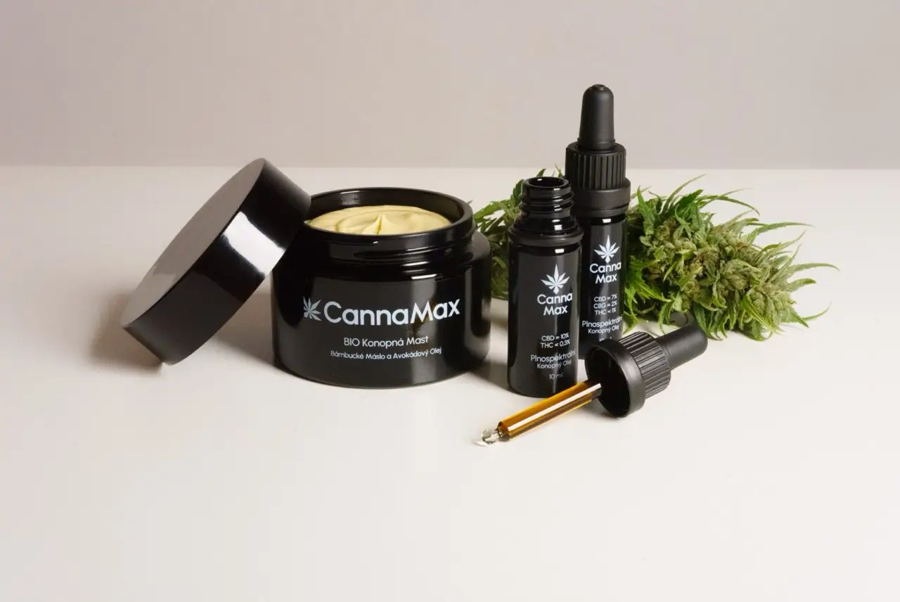 Brand pro Cannamax – rodinnou firmu vyrábějící organické CBD oleje a mastičky. Vytvořilx jsem logo, barevnou paletu, font, etikety, příbalové letáky a krabičky.