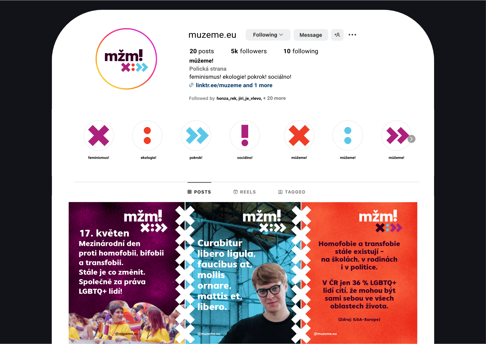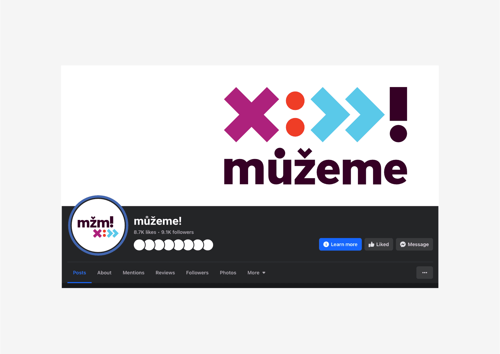 můžeme! is a left-wing political movement created as an open space for people seeking an alternative to established political parties. I have created the brand design — a visual identity including the logo, colour palette, and brand manual that serves as the foundation of their communication.