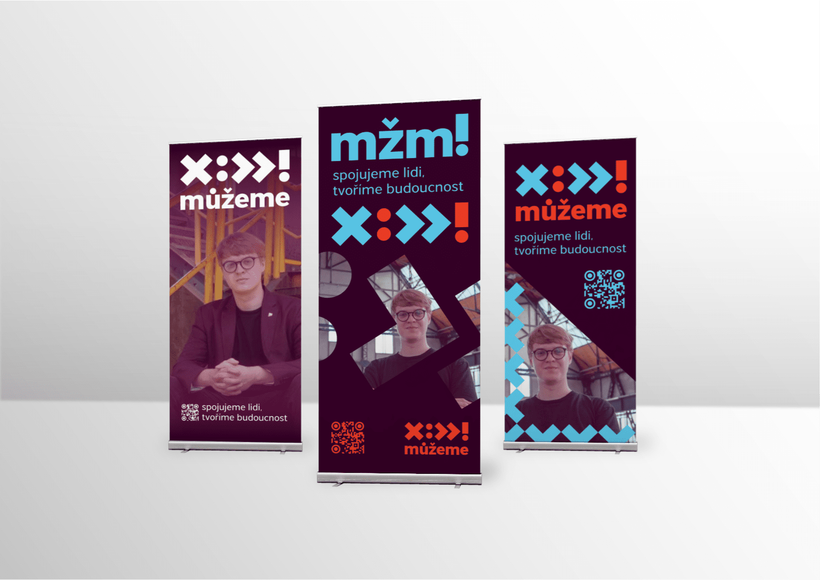můžeme! je levicové politické uskupení, které vzniklo jako otevřený prostor pro lidi hledající alternativu k zaběhnutým politickým stranám. Pro Můžeme! jsem vytvořilx brandový design – vizuální identitu zahrnující logo, barevnost a brand manuál, který slouží jako základ jejich komunikace. S tímto vizuálem mi pomohla konzultace s Ondřejem Crhákem, za což jsem moc vděčnx.
